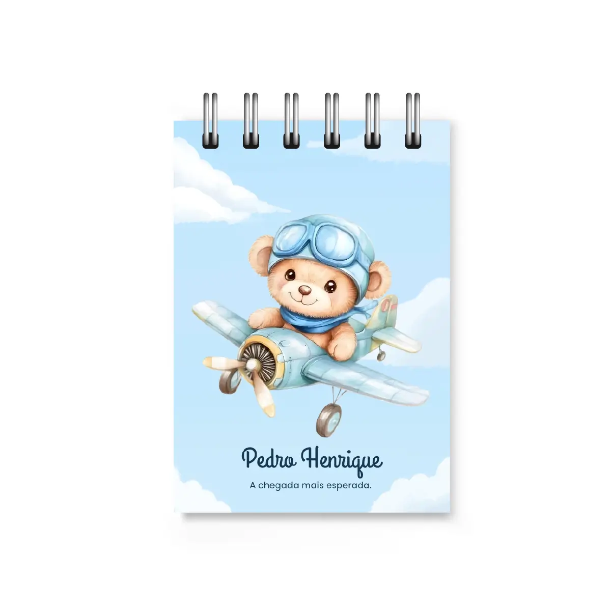 O bloquinho aviador personalizado traz um tema clássico e encantador, ideal para celebrar a chegada do bebê com estilo e delicadeza.