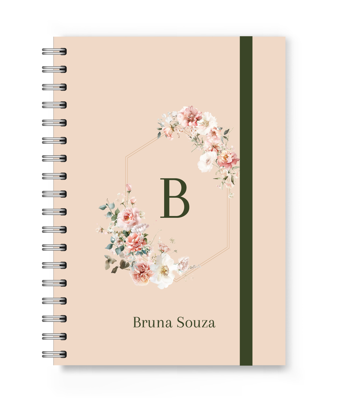 Caderno Personalizado Florart Alfabeto Floral Rosê