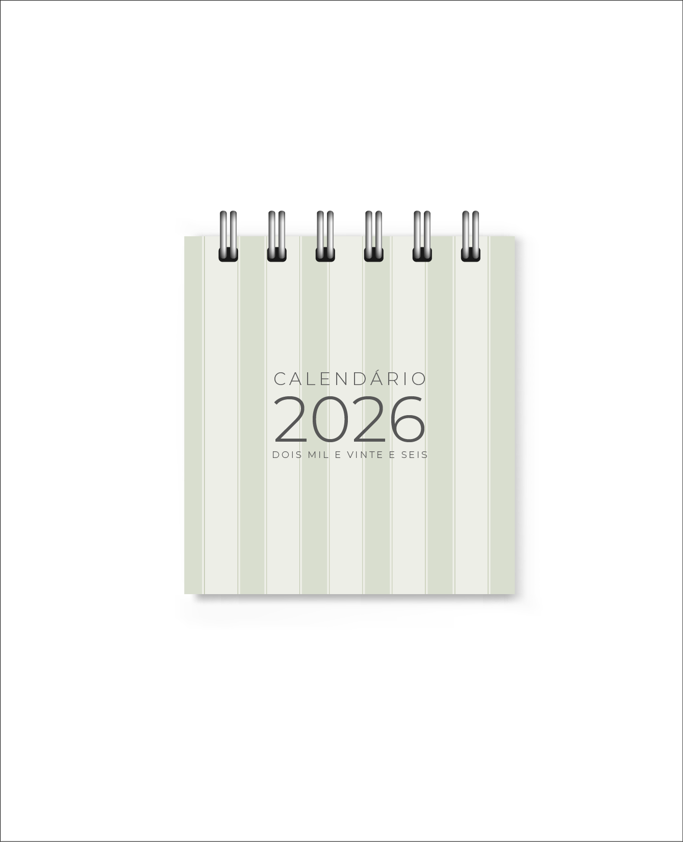 O Mini Calendário 2026 Verde é perfeito para quem busca praticidade com estilo. Pequeno, resistente e cheio de personalidade, é ideal para quem gosta de manter tudo sempre à mão.